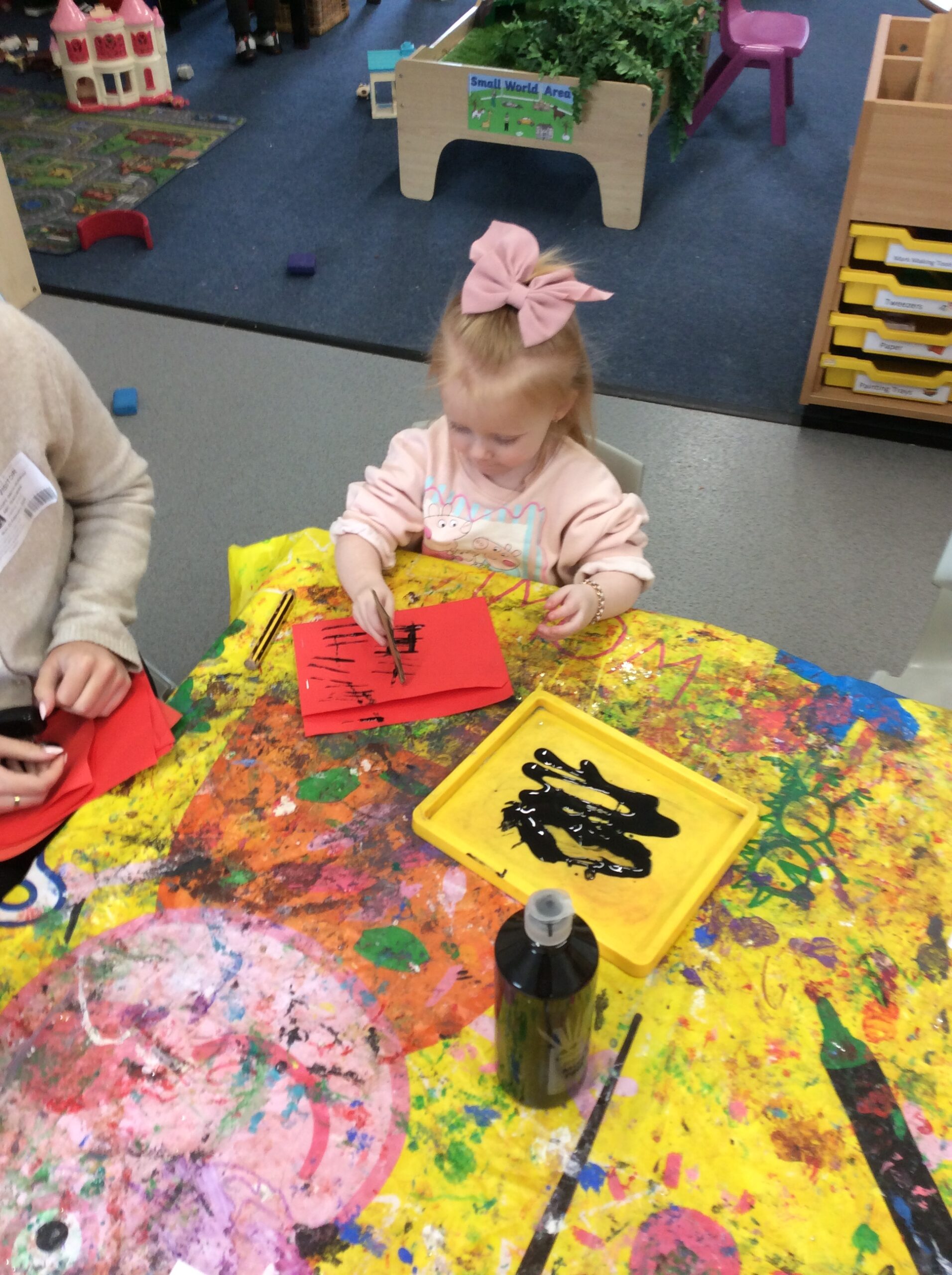 Chinese new year This week we celebrated Chinese new year with lots of activities based around the celebration. We set up a Chinese restaurant in our roleplay area, had a go at Chinese writing and even had our own Chinese food tasting.