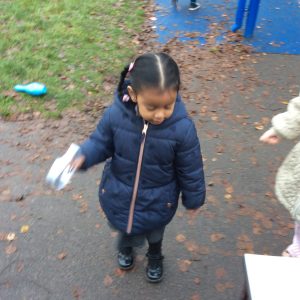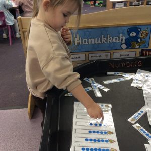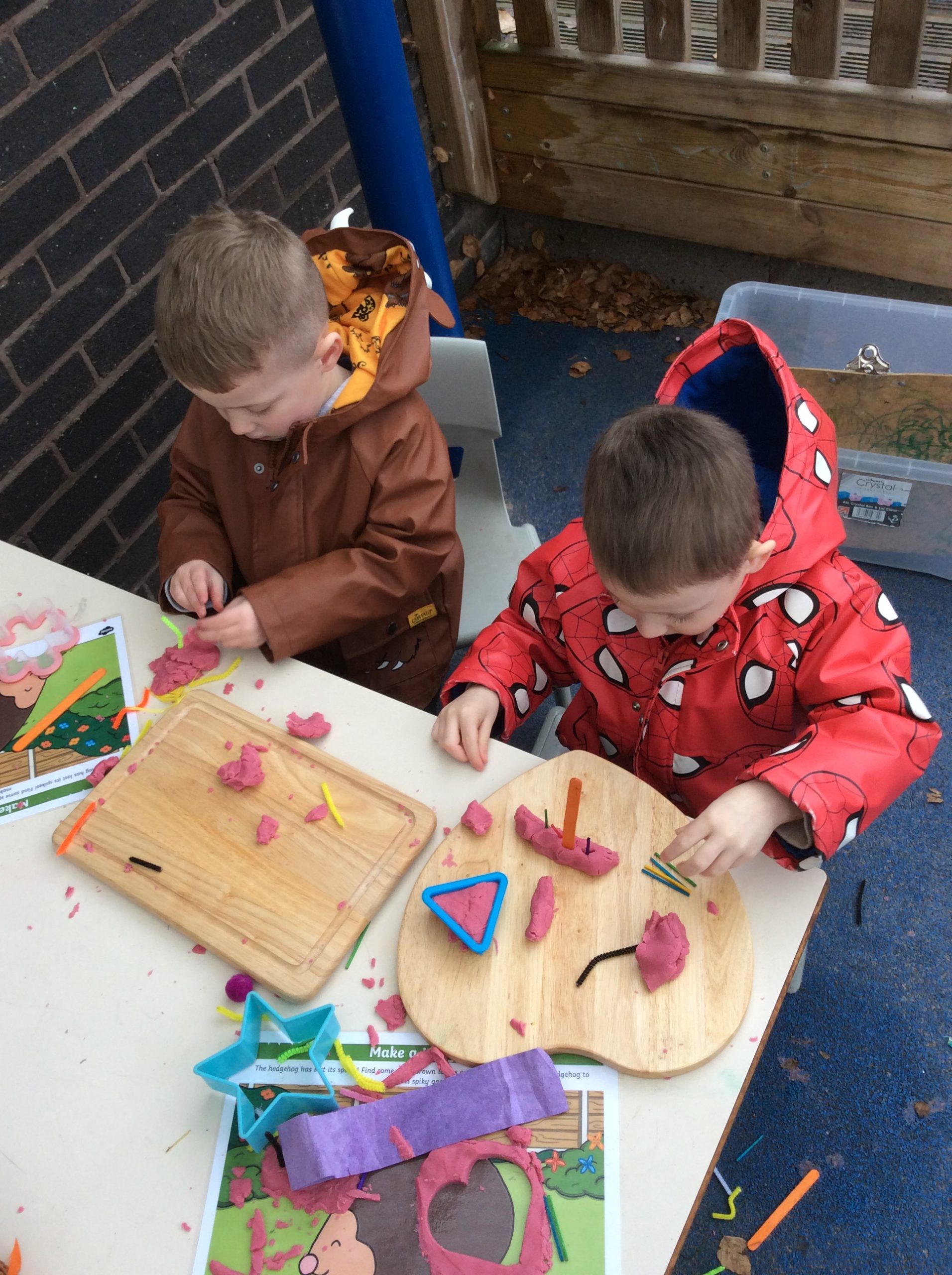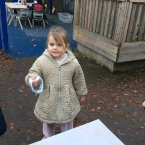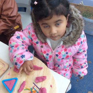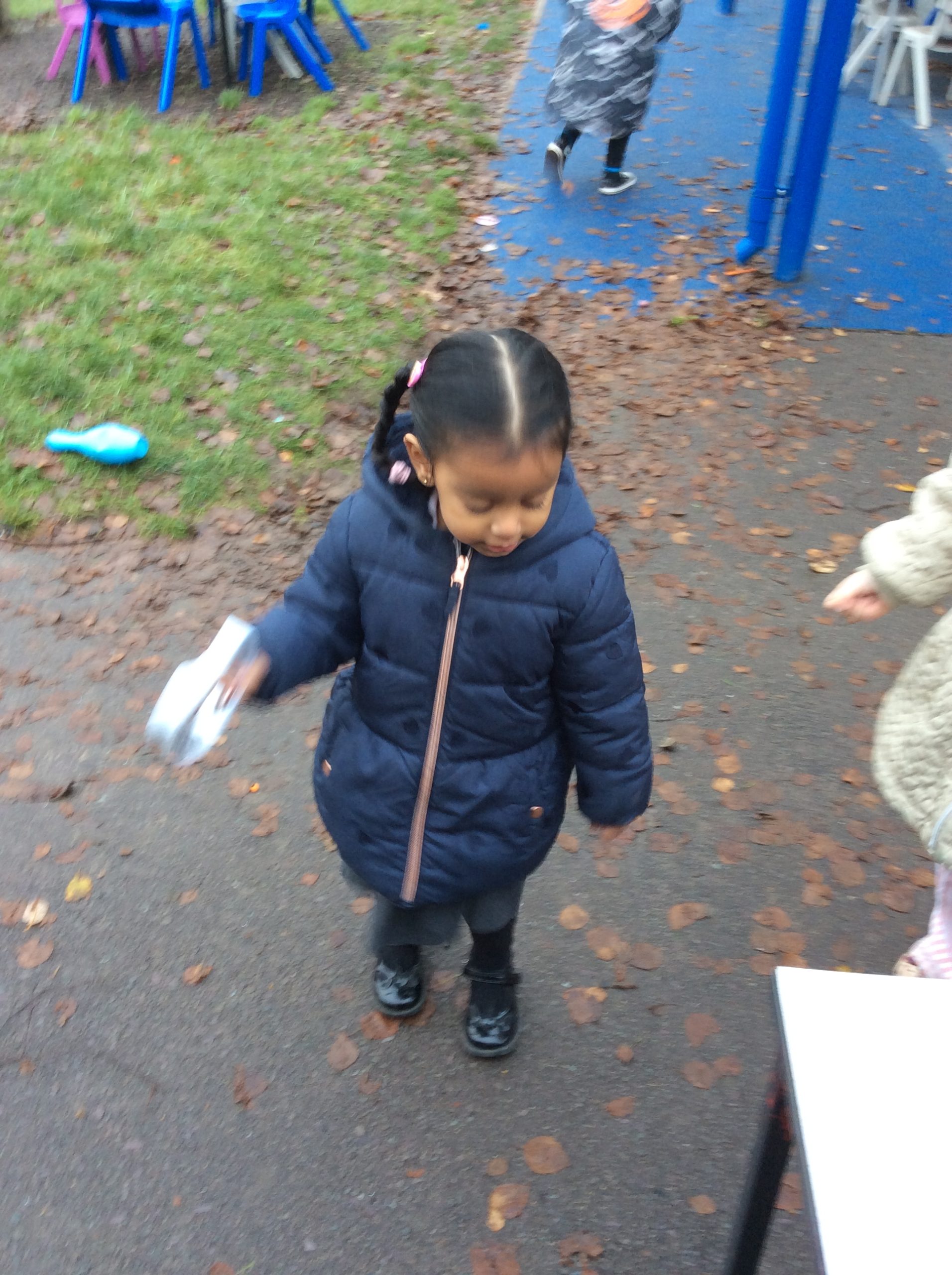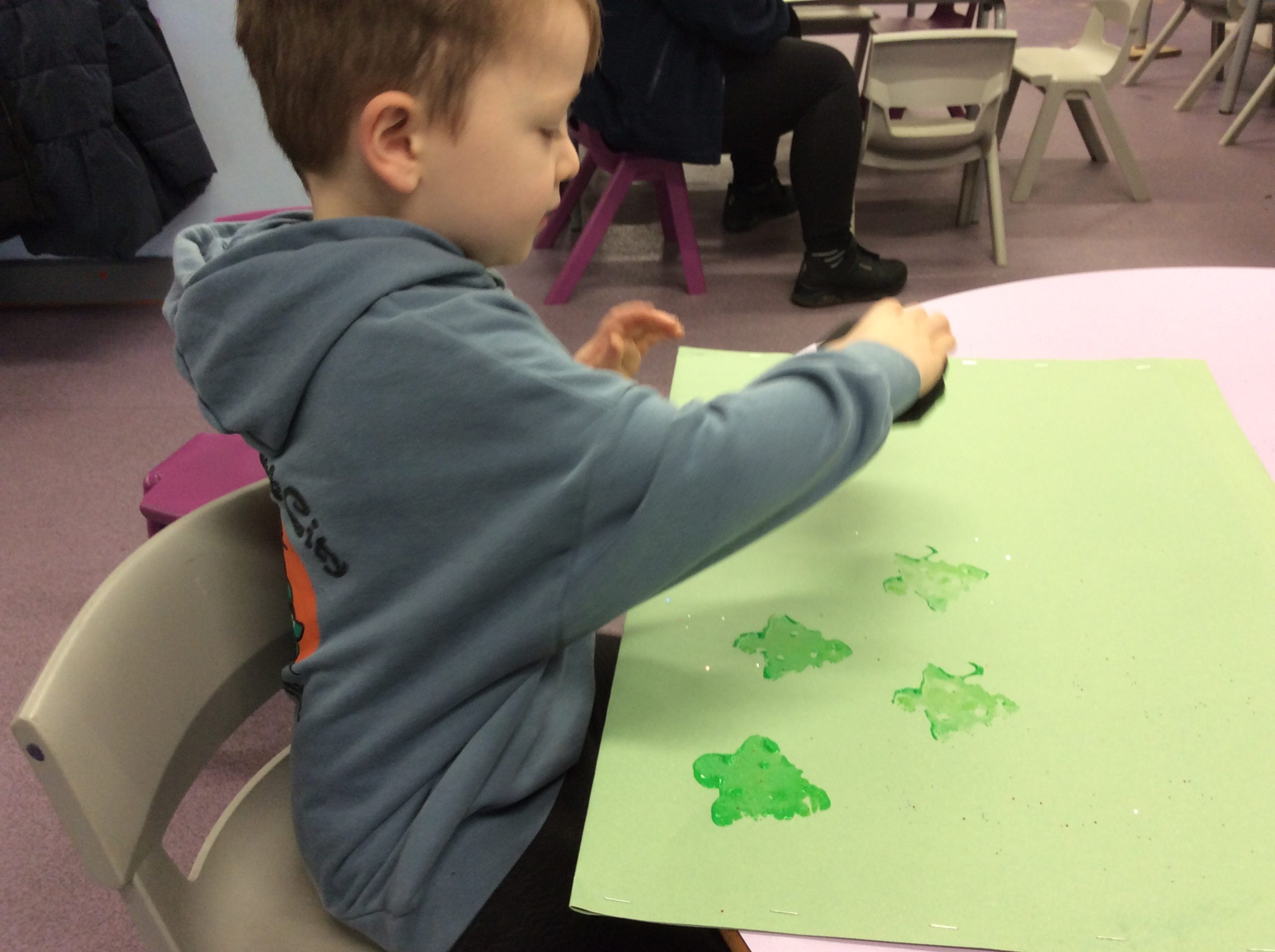 This week the children have been looking at Hanukkah. They have enjoyed making play-dough menorahs and practicing their counting with adding candles to the menorah. The children also enjoyed playing the percussion instruments while singing the Dreidel song. The children have also begun to make some of their Christmas crafts. This week also saw the change of the seasonal tuff-tray from Autumnal to Winter, where they were exploring a winter wonderland.