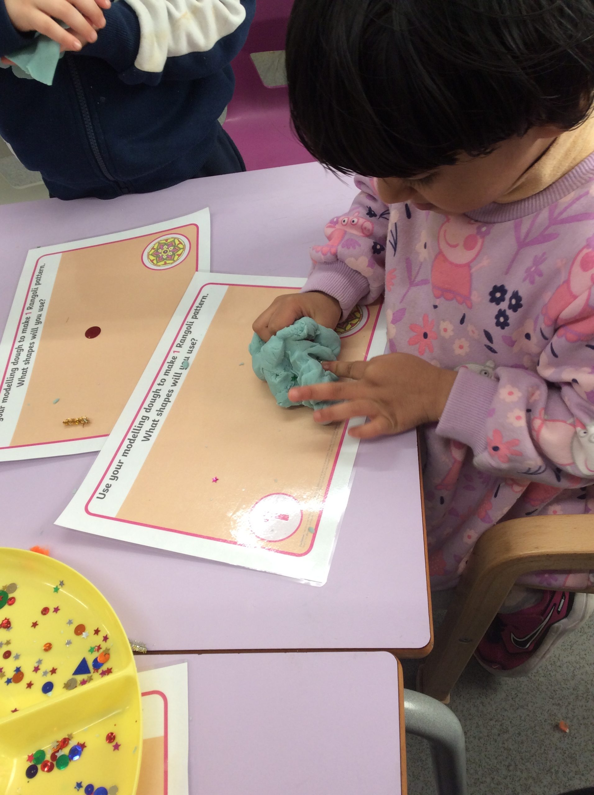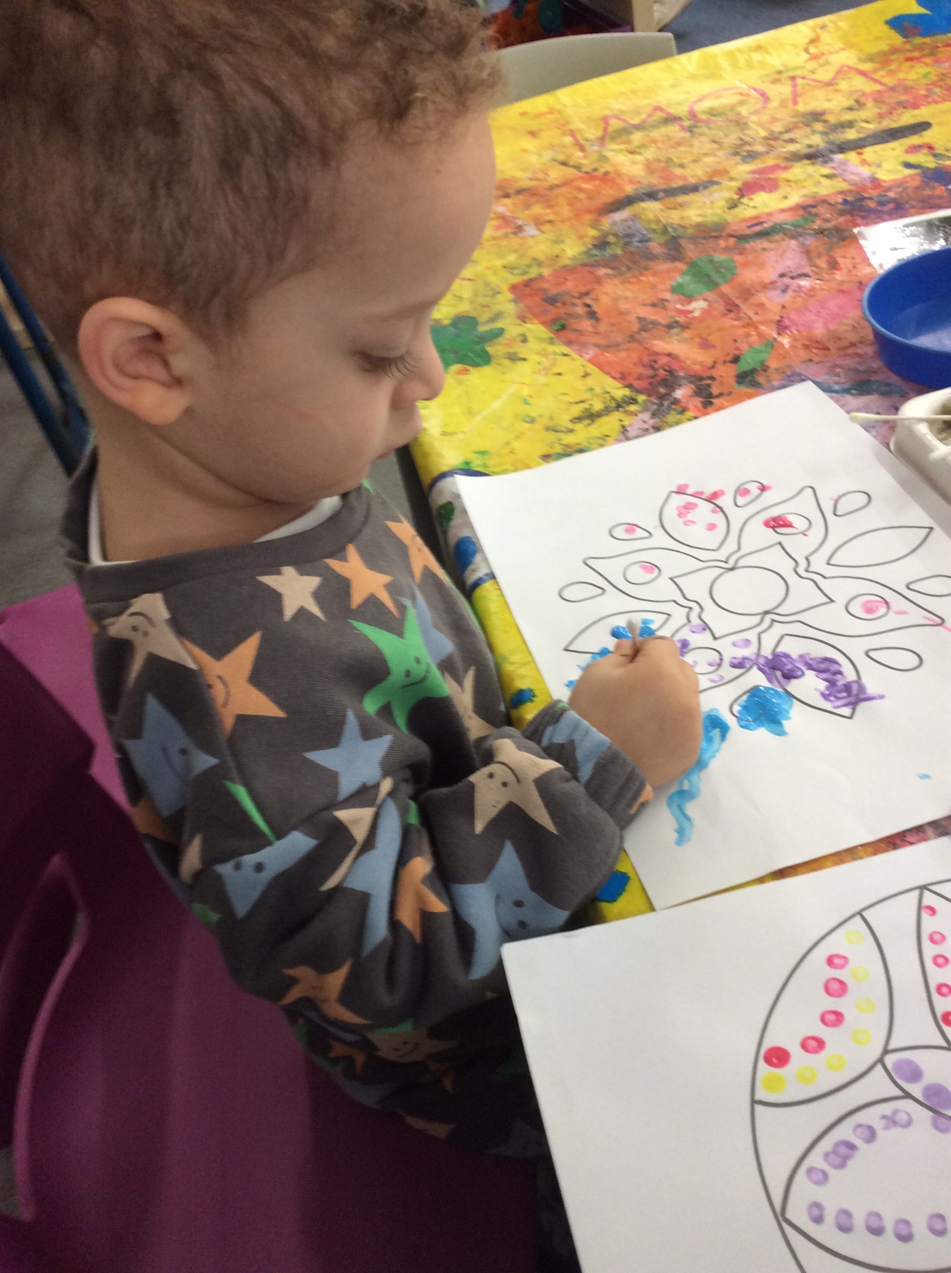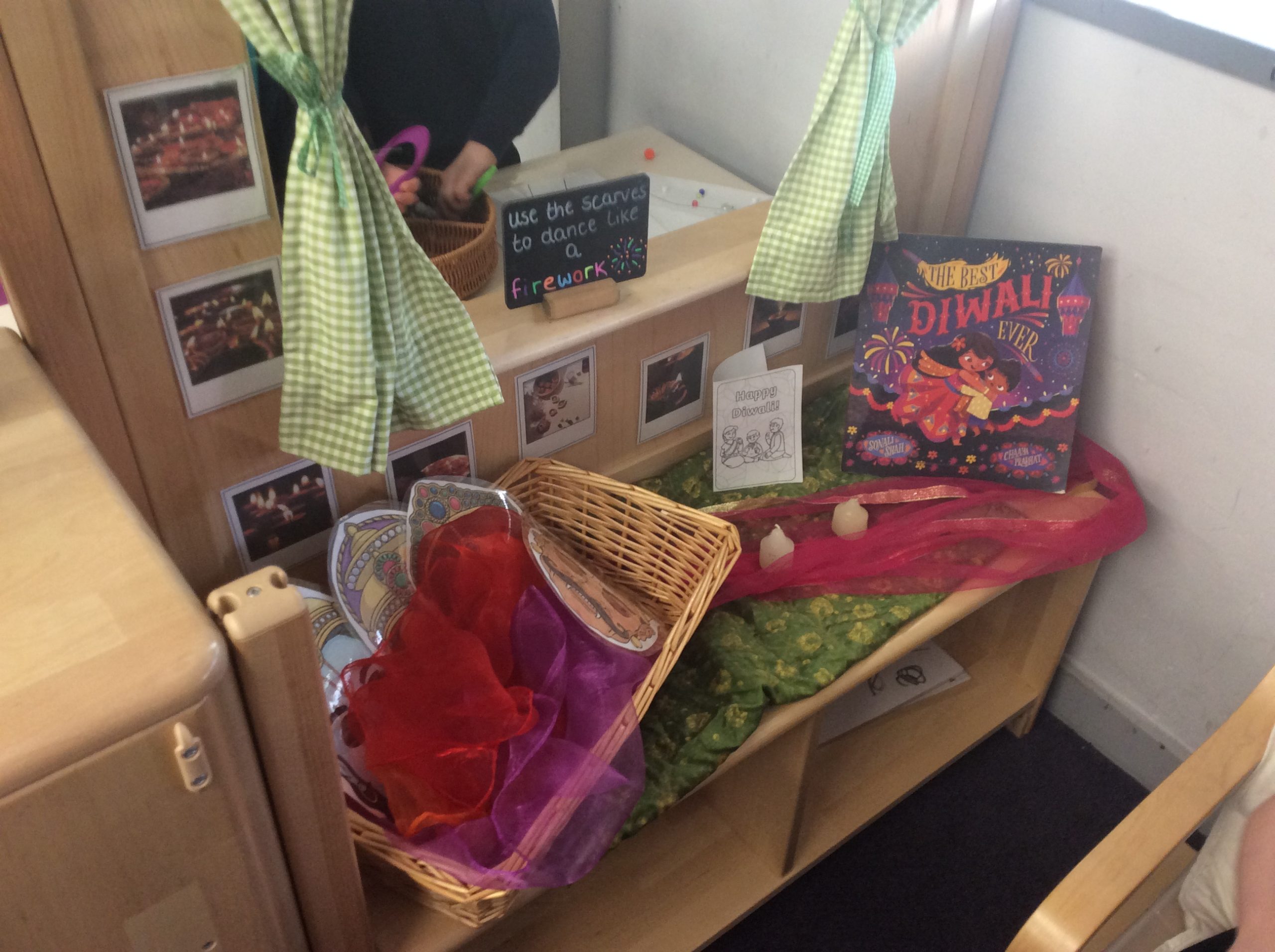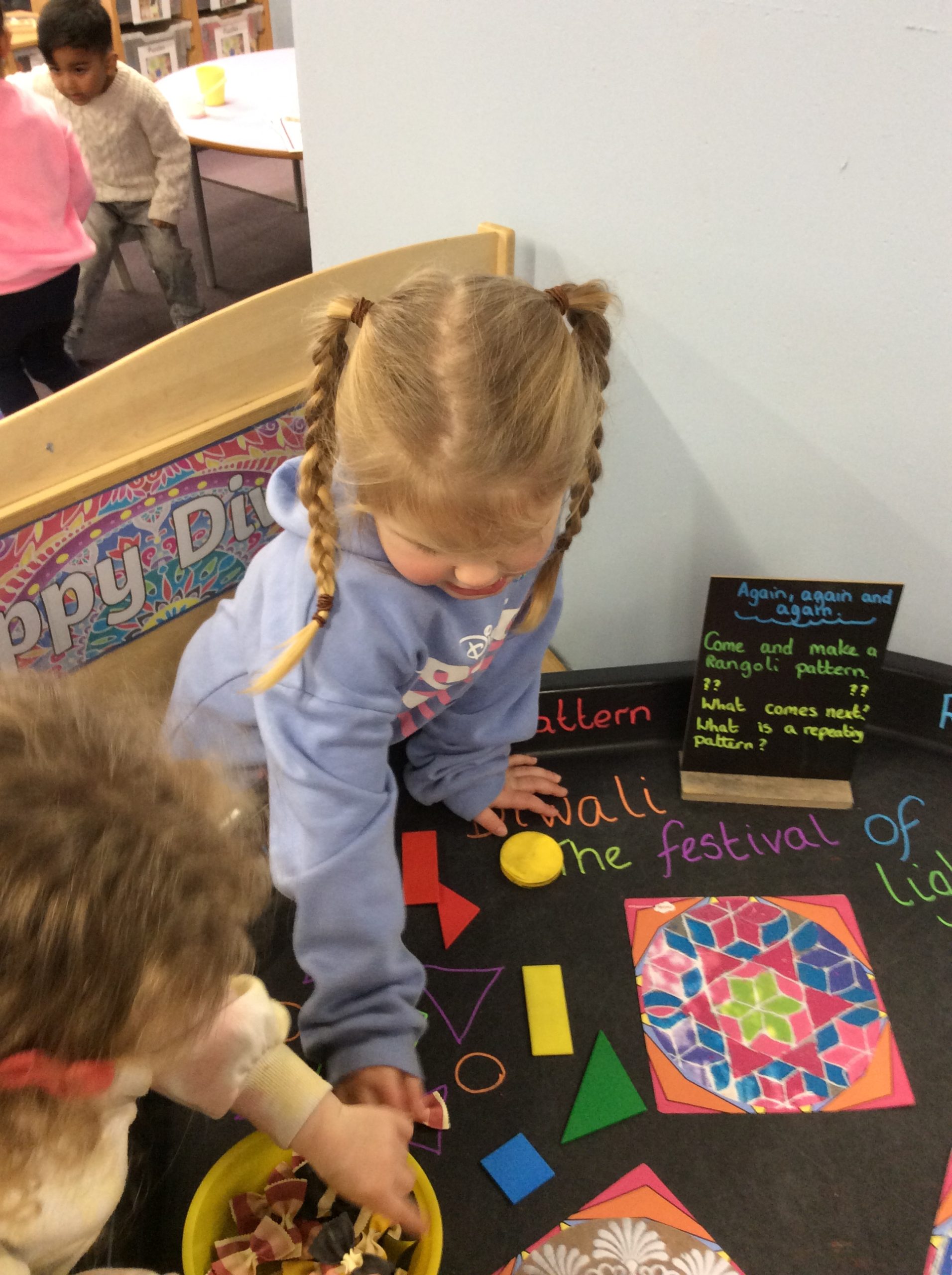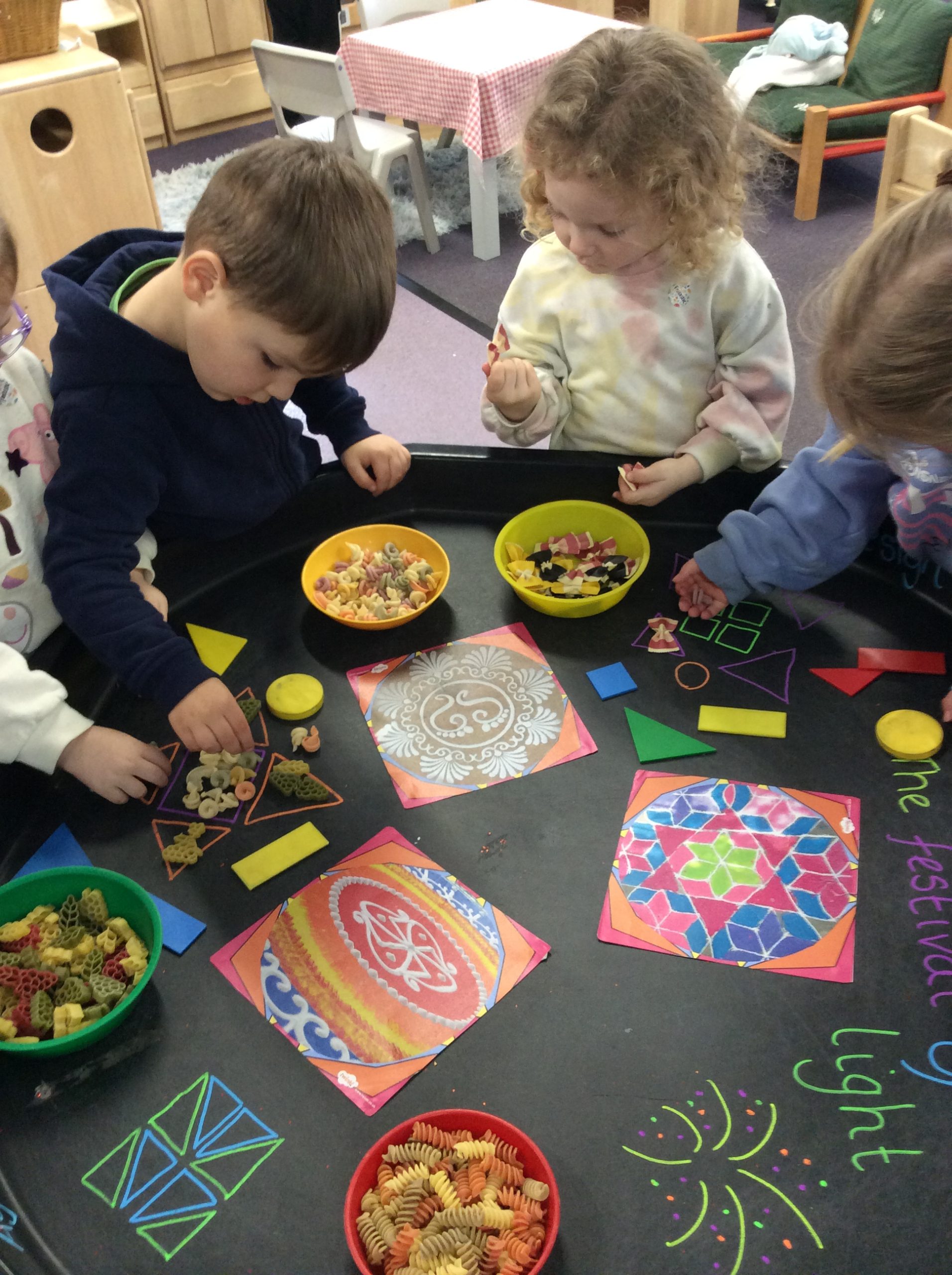 This week in Daycare we have celebrated Diwali. We have explored activities based around colour and pattern. We made our own Rangoli patterns using coloured water, play dough, shapes and the paints. We also explored some traditional music and dancing.