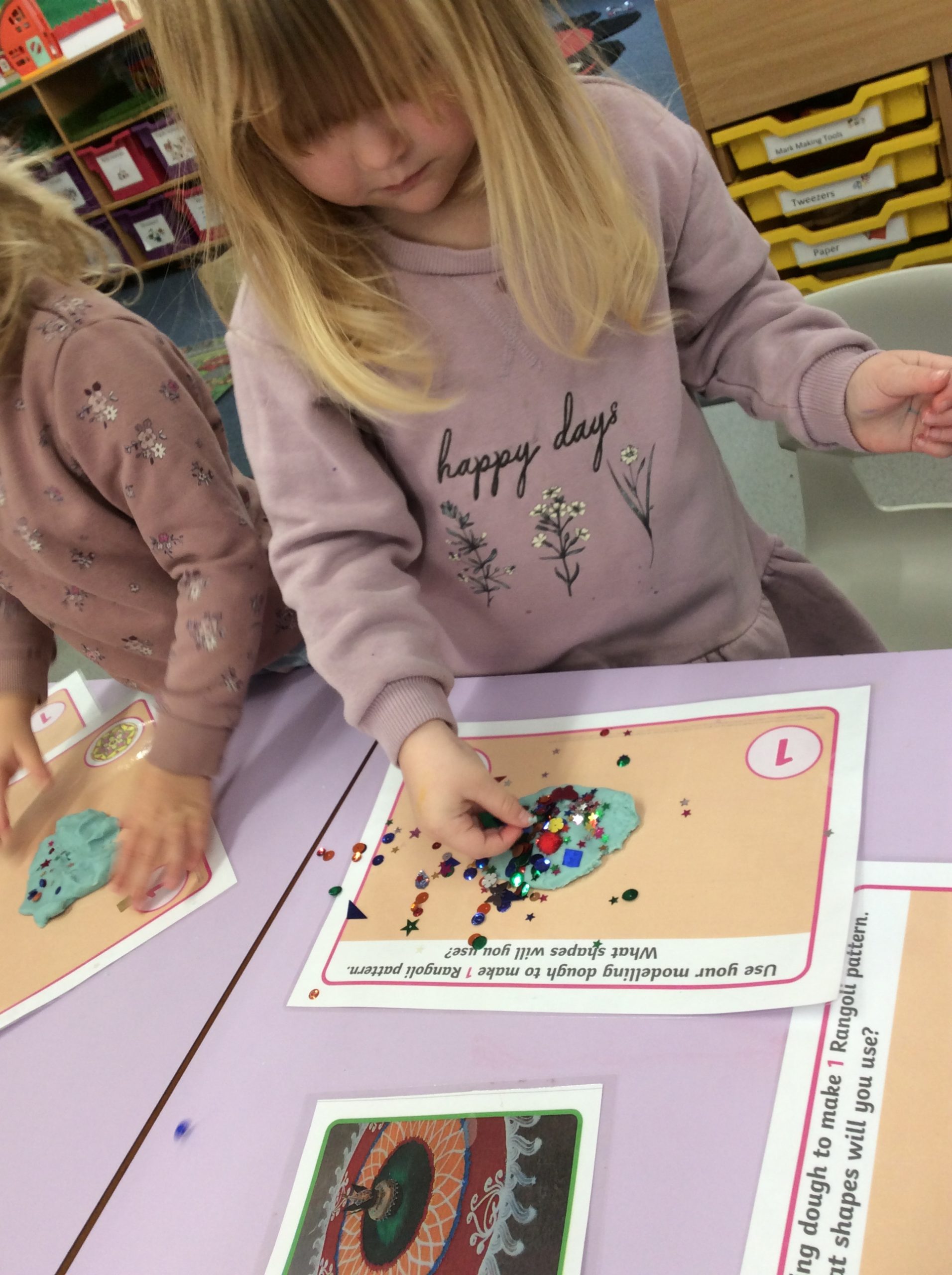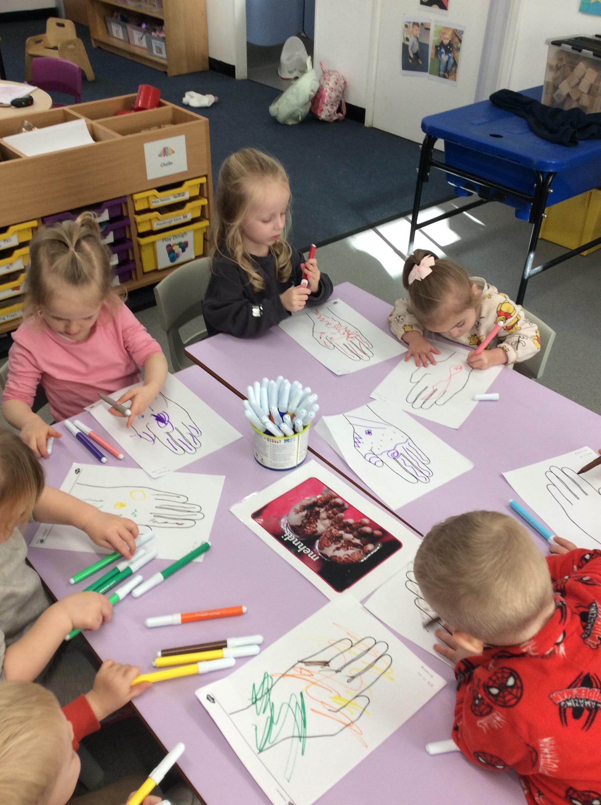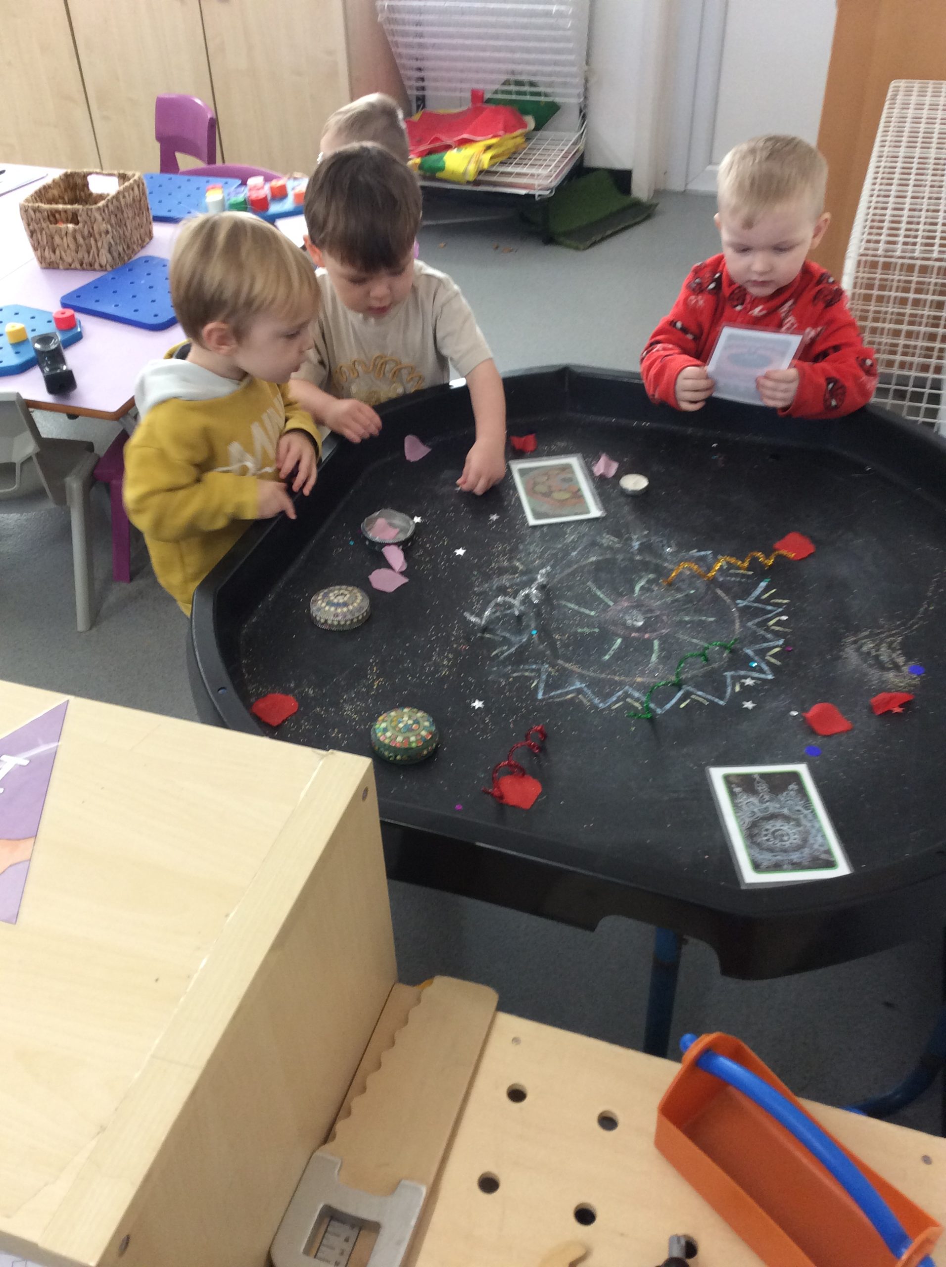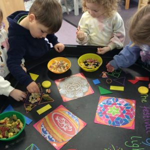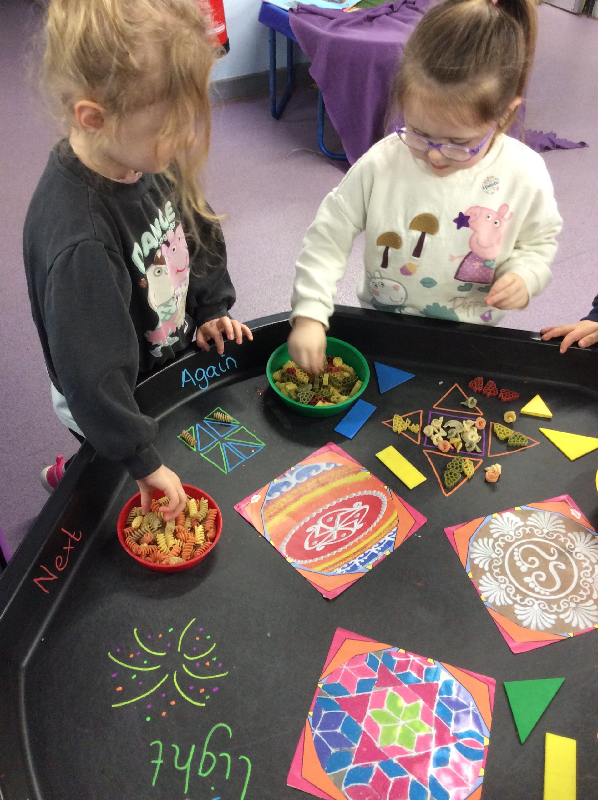 This week in Daycare we have celebrated Diwali. We have explored activities based around colour and pattern. We made our own Rangoli patterns using coloured water, play dough, shapes and the paints. We also explored some traditional music and dancing.