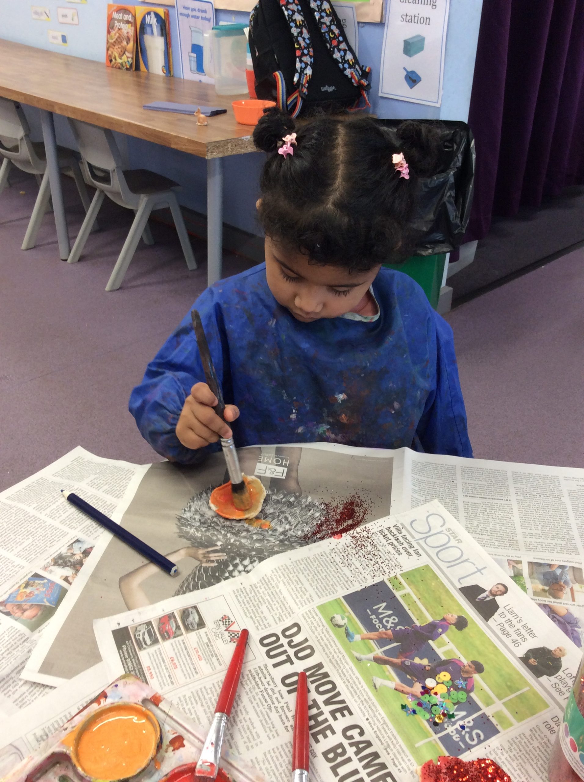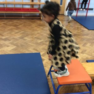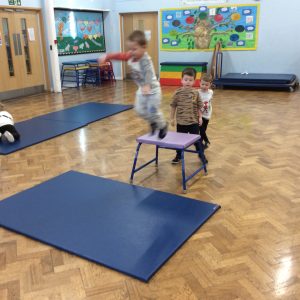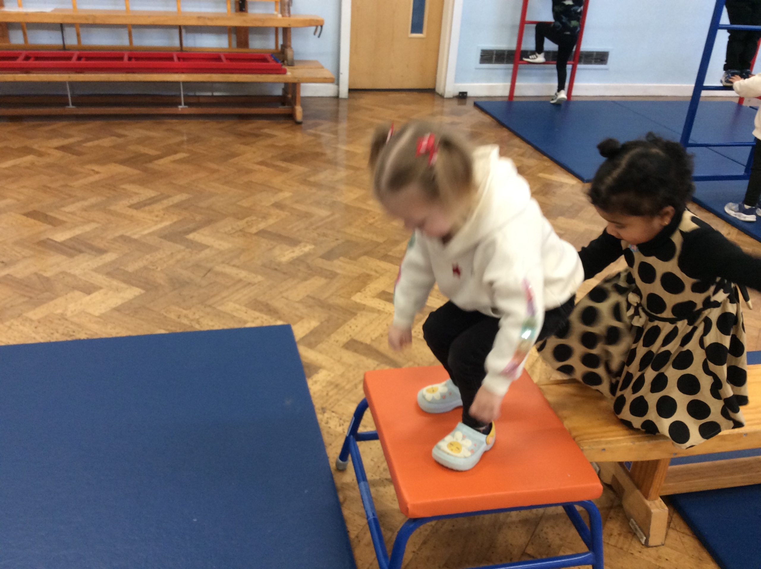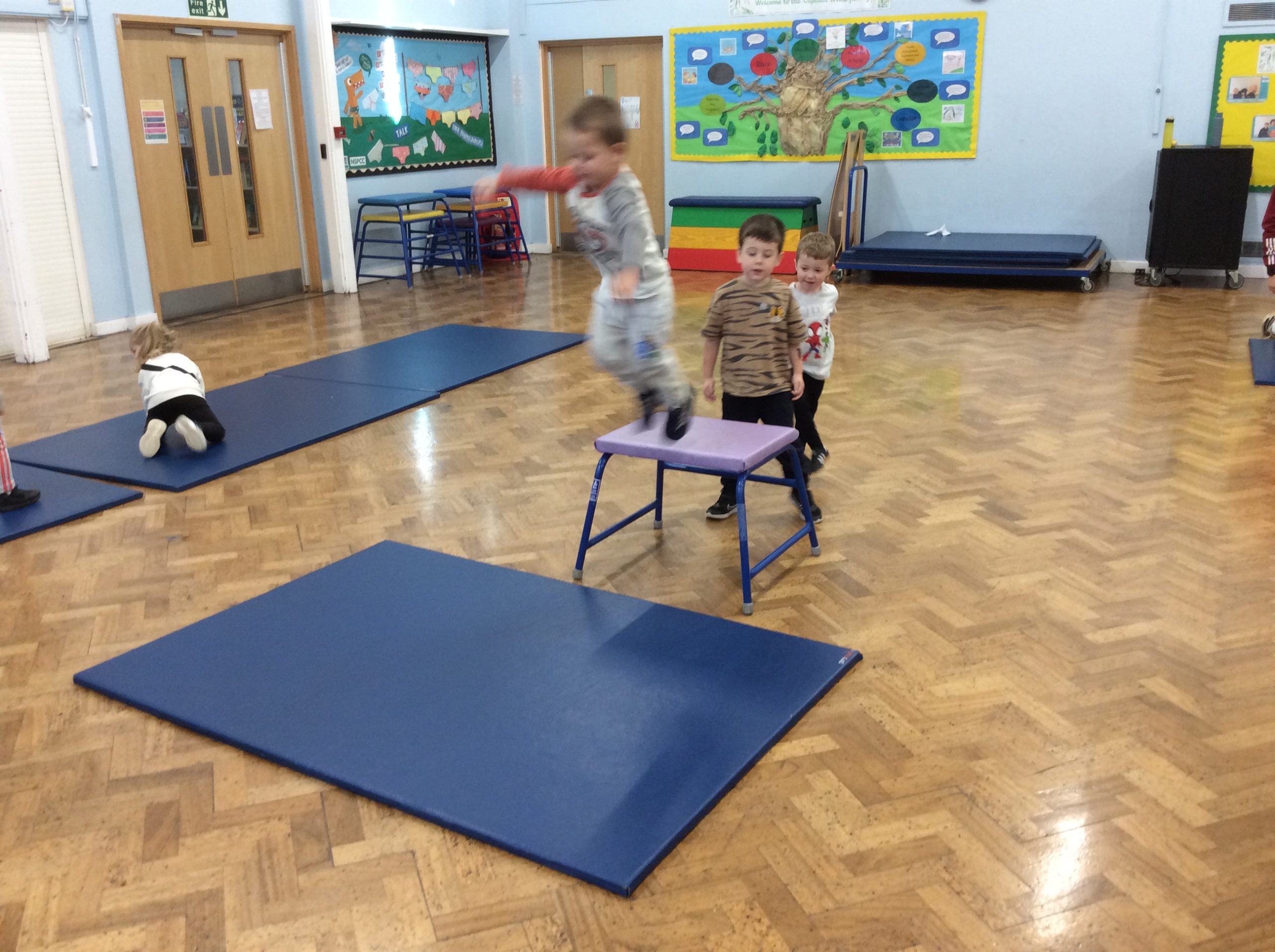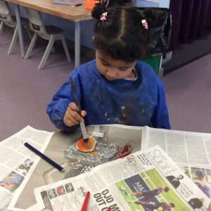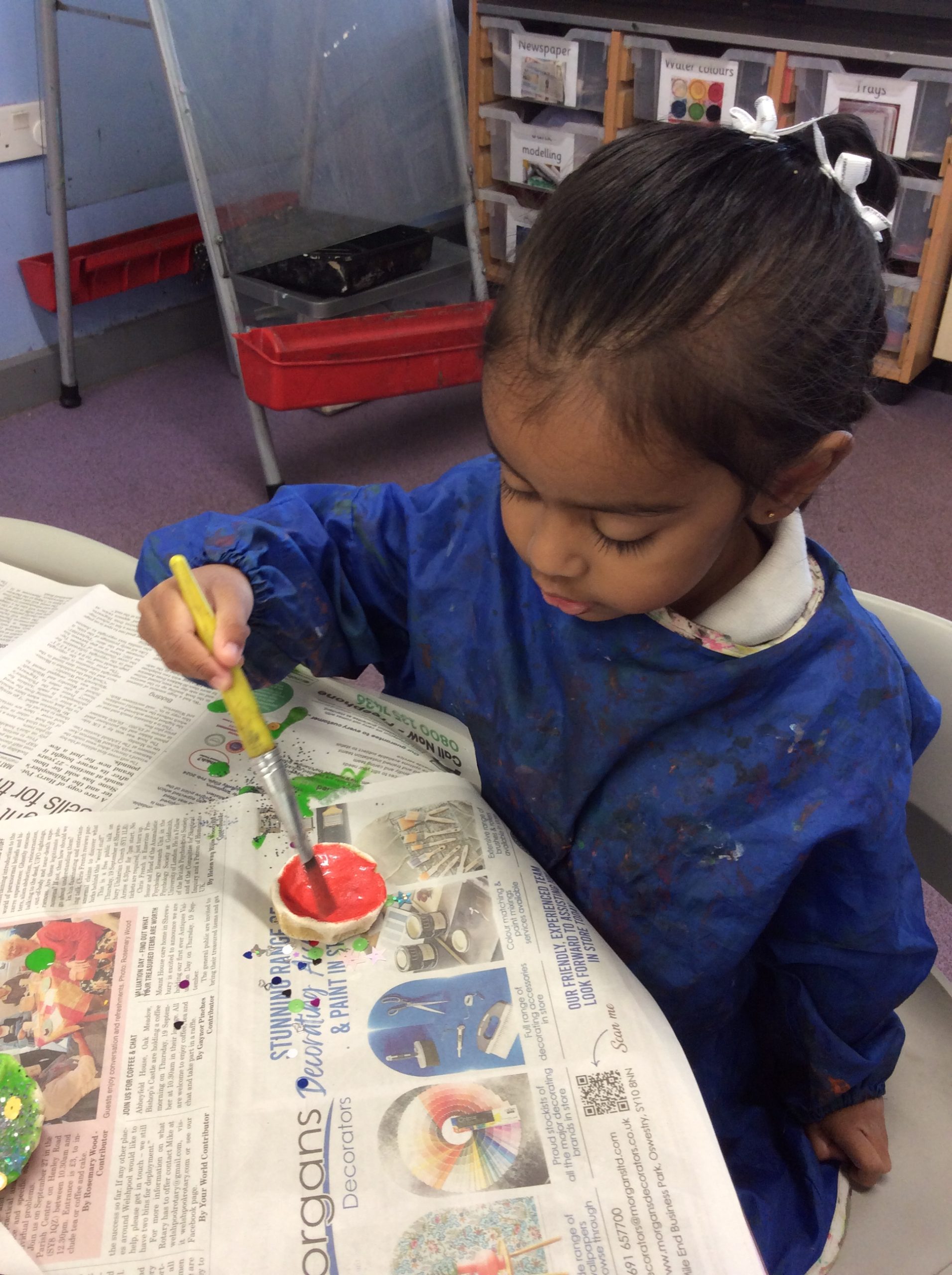 This week the children have been looking at Diwali as part of our Celebration topic. They have enjoyed making Diya lamps and Diwali bells. They have also been exploring light and shadows because the story behind the Diya lamps is that they are used to show how light/good triumphed over darkness/evil in the Rama and Sita story. The children have also been looking at Rangoli patterns and using this knowledge in creating repeating patterns. This week the children were enjoying using the equipment in their P.E. session.