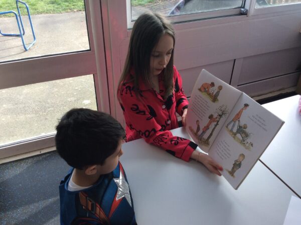 As part of the celebrations, the children enjoyed spending time reading and sharing books with our Year 6 buddies. The older pupils helped bring the stories to life and it was lovely to see the children listening carefully, joining in with the stories and talking about their favourite parts.