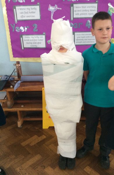 Mr Egypt paid Y5 a visit this week! He came to school with lots of interesting artefacts, extensive knowledge about Ancient Egyptian life and secrets of his past. The children enjoyed making themselves into mummies! and learning how to write their name in hieroglyphics! A great day had by all!