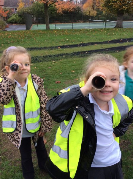 As part of our writing unit we walked to Dawley Town Park to read the story Shark in the Park. We made our own telescopes so that we could become Timothy Pope from the story and look for the shark.