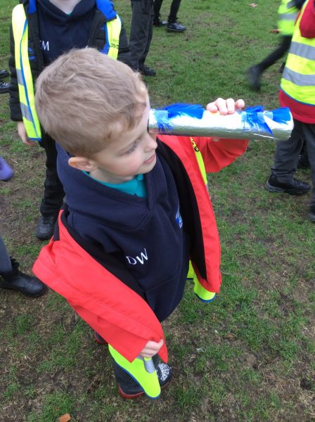 As part of our writing unit we walked to Dawley Town Park to read the story Shark in the Park. We made our own telescopes so that we could become Timothy Pope from the story and look for the shark.