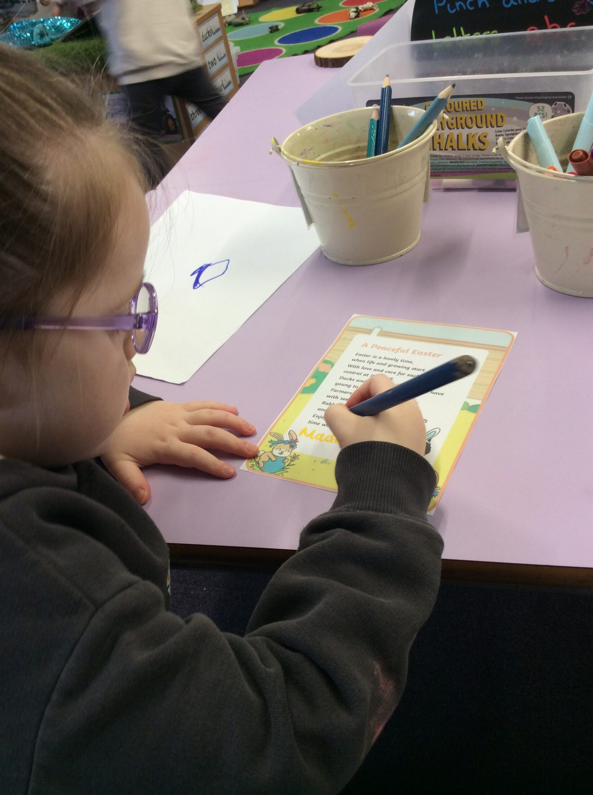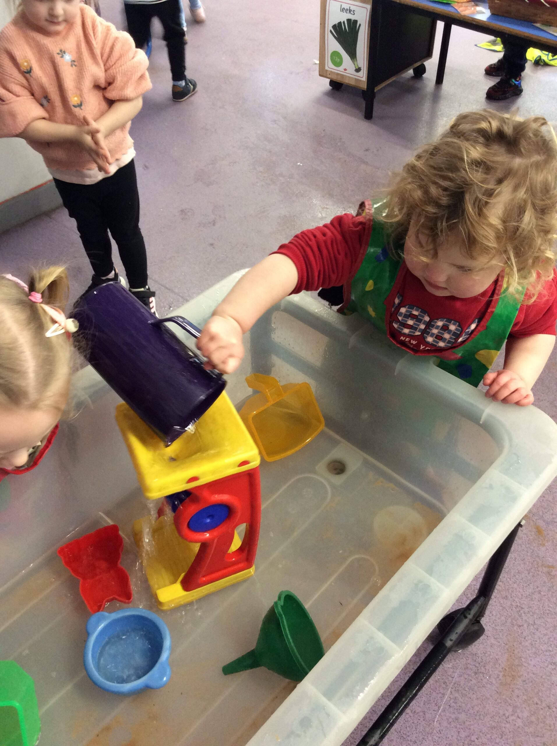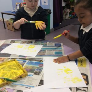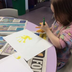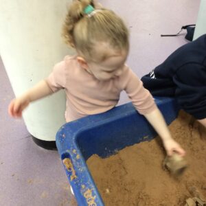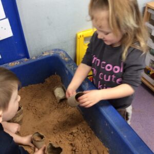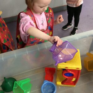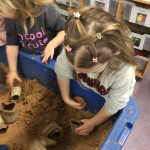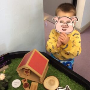 Our last week of term we looked at the book ‘A Squash and a Squeeze’. the children enjoyed retelling the story with the character masks. They also made their Easter cards and did some Easter maths matching numerals to amounts. In the water tray this week they enjoyed practicing their pouring and filling skills, while in the sand they were testing out how many scoops of sand they could fit in to the tubes.