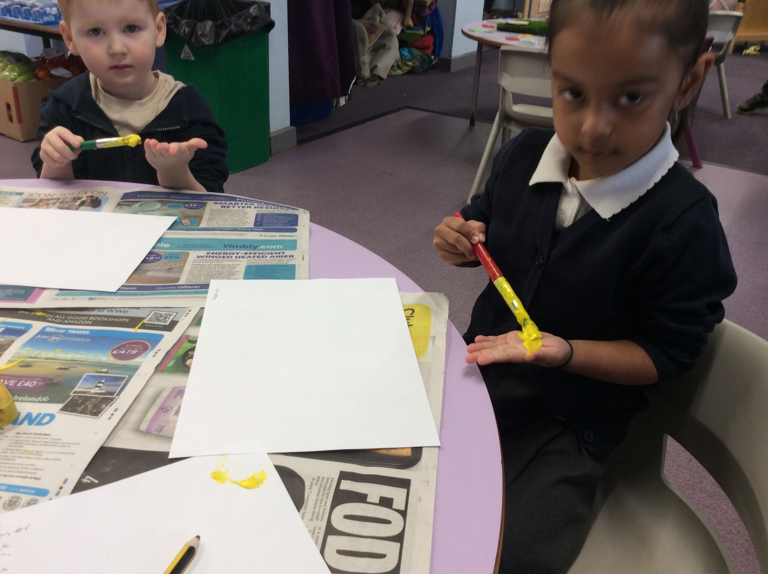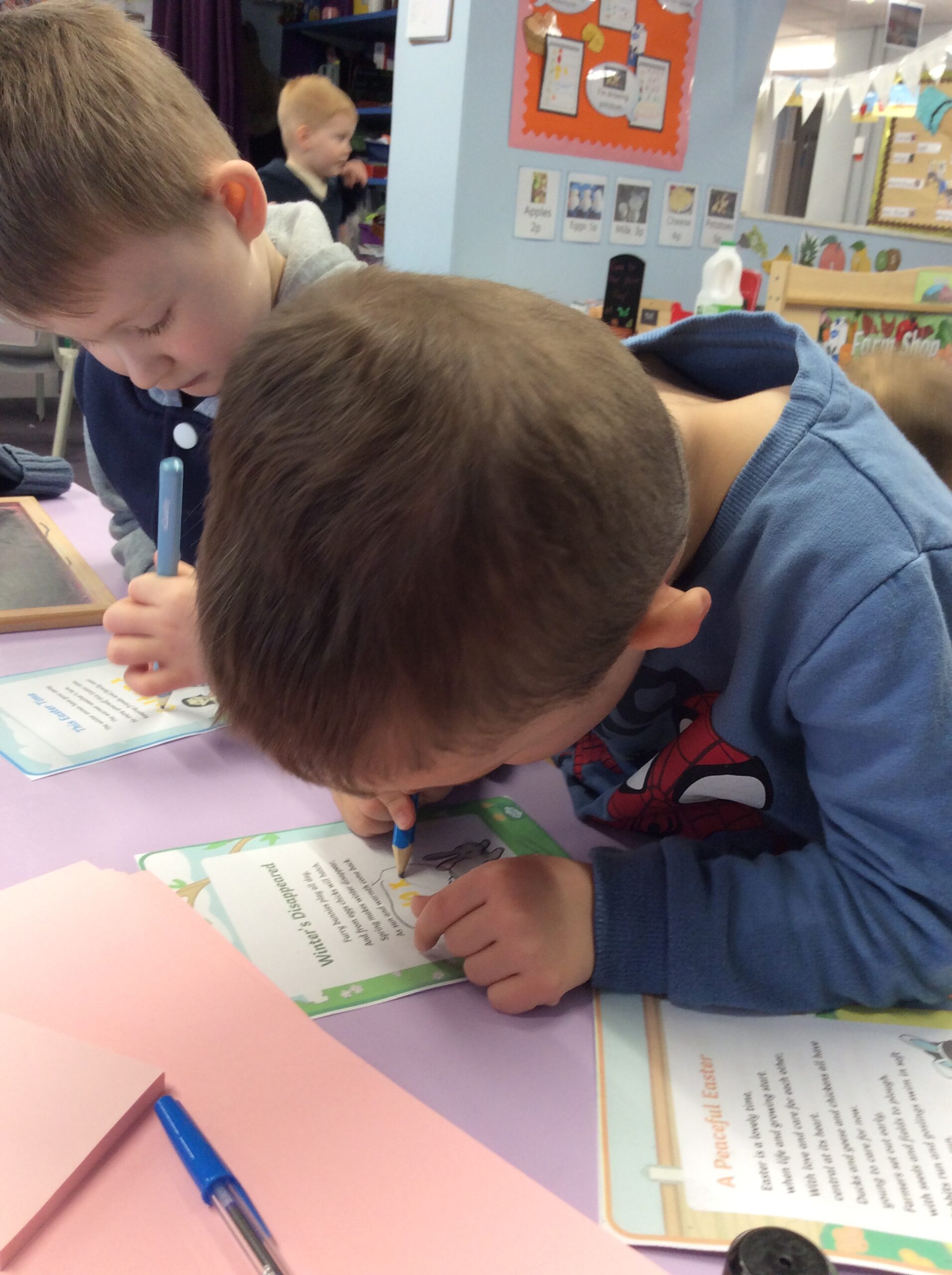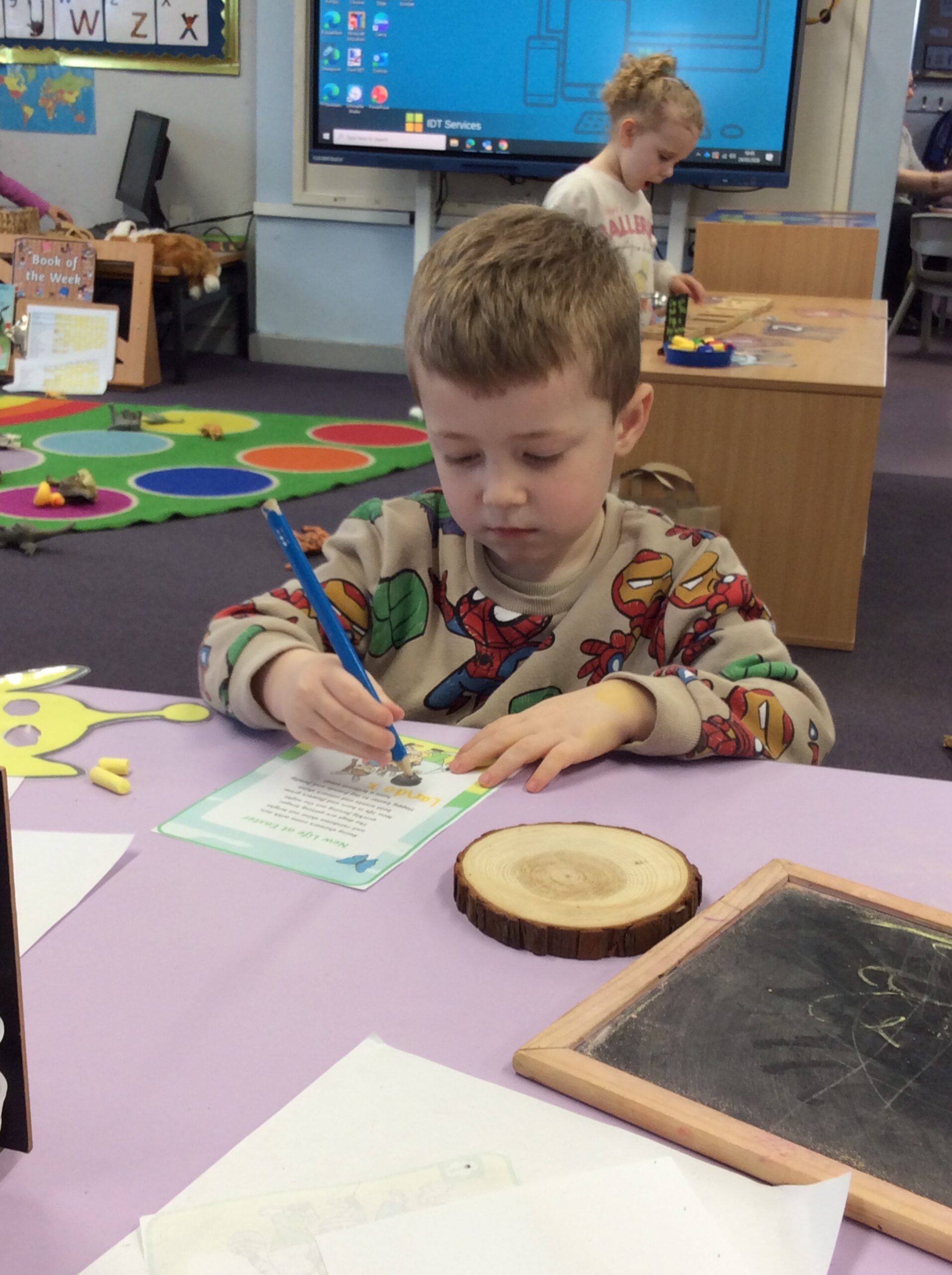 Our last week of term we looked at the book ‘A Squash and a Squeeze’. the children enjoyed retelling the story with the character masks. They also made their Easter cards and did some Easter maths matching numerals to amounts. In the water tray this week they enjoyed practicing their pouring and filling skills, while in the sand they were testing out how many scoops of sand they could fit in to the tubes.